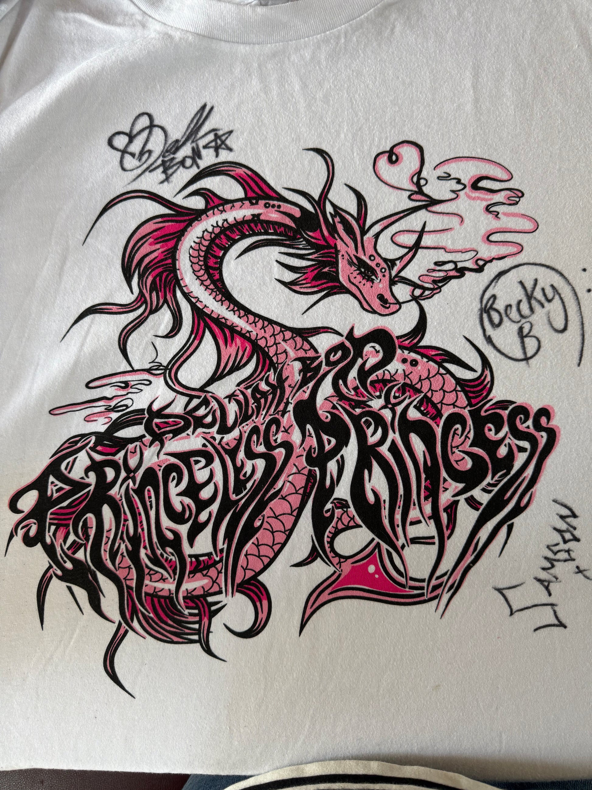 (we have a limited number of 3XL and 4XL t-shirts that were signed by Delilah Bon, becky Badwin & Samson on tour)