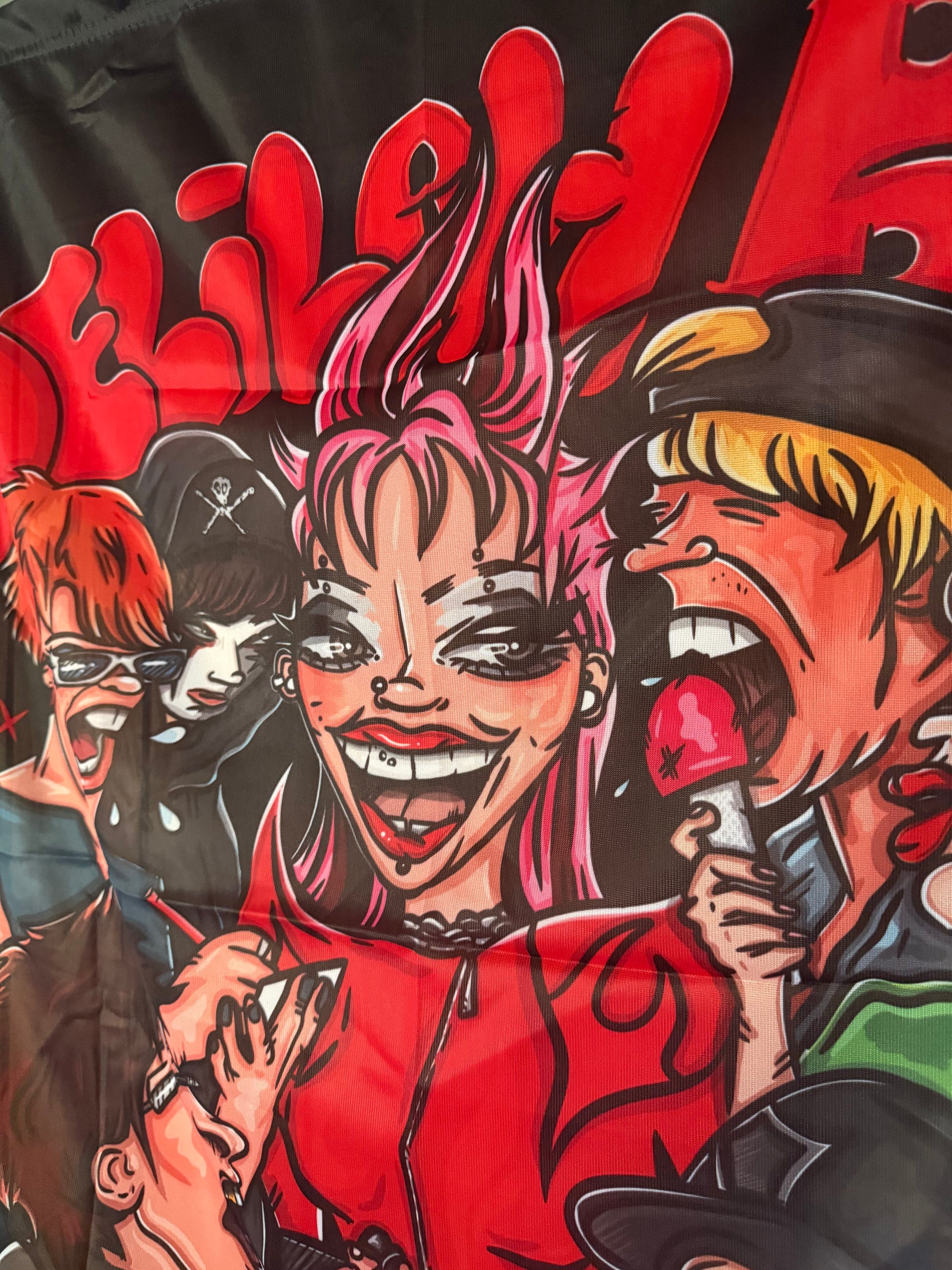 Mesh material and 4 ring holes for mounting on a wall - Band Scrim